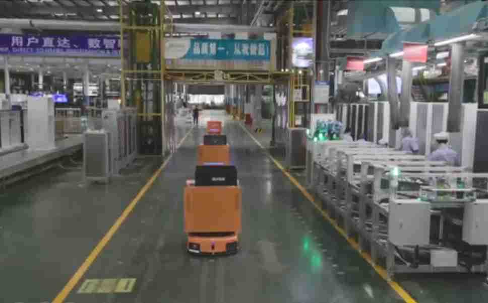 为车载冰箱物流配送打造的智能解决方案,,,包含产中物流通过潜伏举升AMR搬运至线边,,,产后成品物流智能仓储,,,流程包含产中物流智能齐套入库,,,,线边安灯叫料AMR智能配送至线边,,,成品入库、、、、出库,,,通过无人堆高车机器人,,,智能仓储管理替代人工作业管理,,,实现更高存储、、、更高效率、、、更具柔性化的解决方案。。。